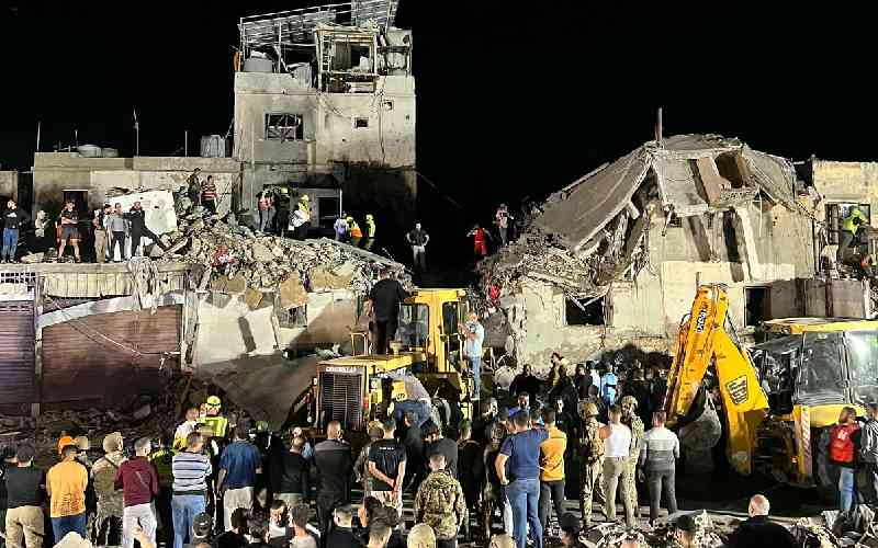 Civil defence rescuers search for survivors at the site of an Israeli air strike on the village of Haret Saida, near Lebanon's southern city of Sidon, on October 29, 2024. [AFP]