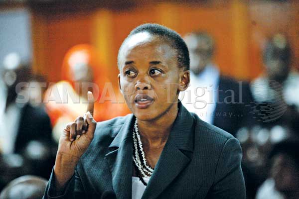 | Kethi Kilonzo argues her case before the IEBC tribunal at the Milimani Law Courts where TNA successfully proved she was not a validly registered voter. [PHOTO: EVANS HABIL/STANDARD] |
