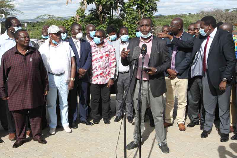 COTU Secretary-General Francis Atwoli addresses reporters after hosting Luhya politicians at his Kajiado home. [Jonah Onyango, Standard]