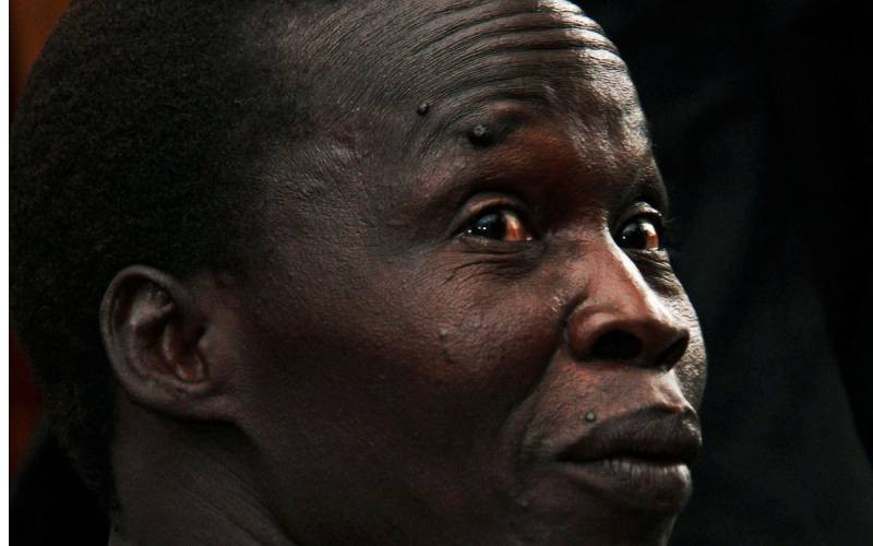 Suspected Lord's Resistance Army member Thomas Kwoyelo is pictured during a pre-trial session at the High Court in Kampala on Februay 1, 2017. [AFP]