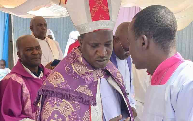 The Legion Maria of African Church Mission Sec Gen Episcopal Conference Bishop Wycliffe Nyaperah (Centre) after  new year service on Jan 1, 2026. [Mike Kihaki, Standard]