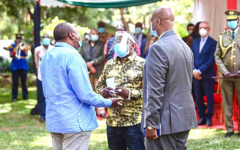 President Uhuru Kenyatta, Nairobi County Governor Mike Sonko and Nairobi Metropolitan Services (NMS) Director-General Mohamed Badi at a past event. [File]