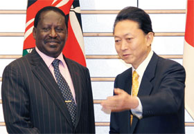Prime Minister Raila Odinga and Japan Prime Minister Yukio Hatoyama in Tokyo.