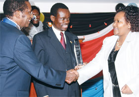 KenGen Company Secretary, Mrs Rebecca Miano (right), receives the Company Secretary of the Year Award from the Director of the Kenya Anti Corruption C