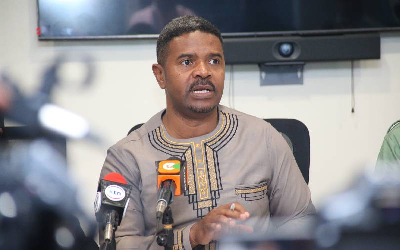 Vocal Africa Executive Director Hussein Khalid addresses the Press on the abduction of activists Bob Njagi and Nicholas Oyoo in Uganda, on October 27, 2025. The activists were released by the Ugandan government. [Kanyiri Wahito, Standard]