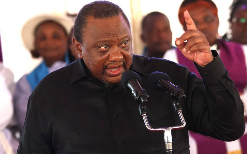 Former President Uhuru Kenyatta at a funeral of former Kirinyaga Senator Daniel Karaba. [File Courtesy]