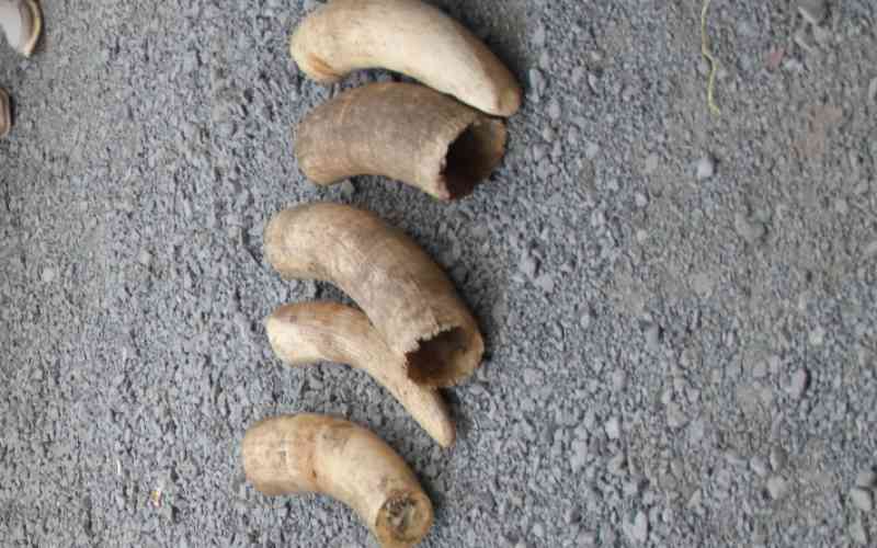 Elephant tusks recovered in Kitengela. [Peterson Githaiga, Standard]