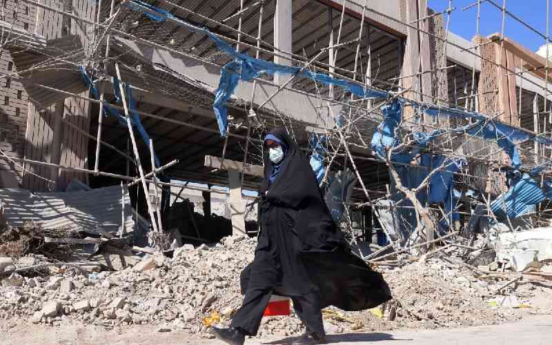 A woman walks past a heavily-damaged building near Ferdowsi square in Tehran on March 3, 2026. [AFP]