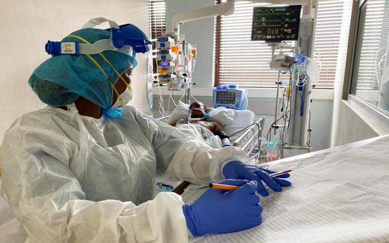 A medical staff attends to a Covid-19 patient at a special ward at Arwyp Medical Centre, as South Africa is about the reach a milestone of 1 million infections, in Kempton Park, South Africa, December 25, 2020. [Reuters]