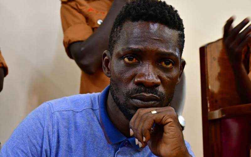 Ugandan presidential candidate Robert Kyagulanyi also known as Bobi Wine sits inside the courtroom in Iganga, eastern Uganda November 20, 2020. [File, Reuters]