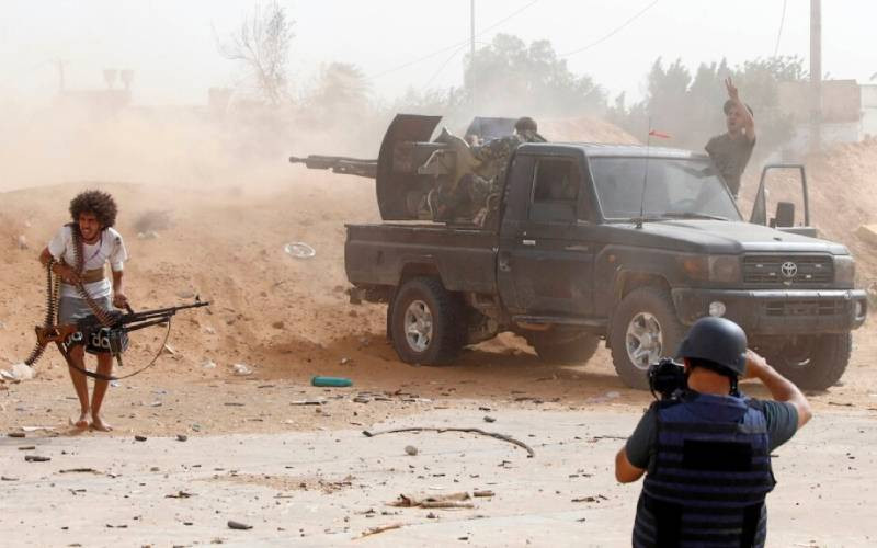 A journalist covers the frontline during clashes in the south of Tripoli, Libya.[File VOA]