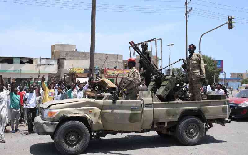 Sudanese people greet soldiers loyal to army chief Abdel Fattah al-Burhan in the Red Sea city of Port Sudan on April 16, 2024. [AFP]