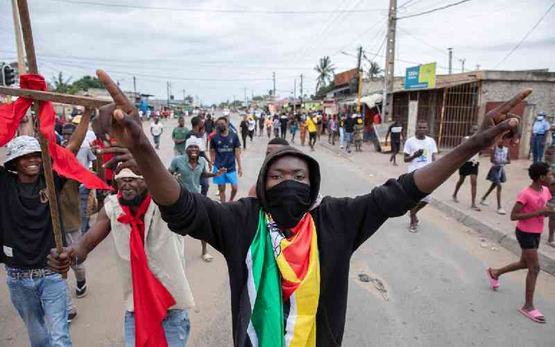 A protester gestures while protesting in the Hulene neighbourhood of Maputo on October 31, 2024, during the first day of the nationwide strike called by Mozambique's opposition leader Venancio Mondlane. [AFP]
