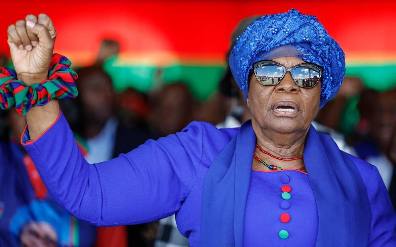 The South West Africa People's Organisation (SWAPO) presidential candidate Netumbo Nandi-Ndaitwah clenches her fist as she attends a campaign rally in Windhoek on November 24, 2024. [AFP]