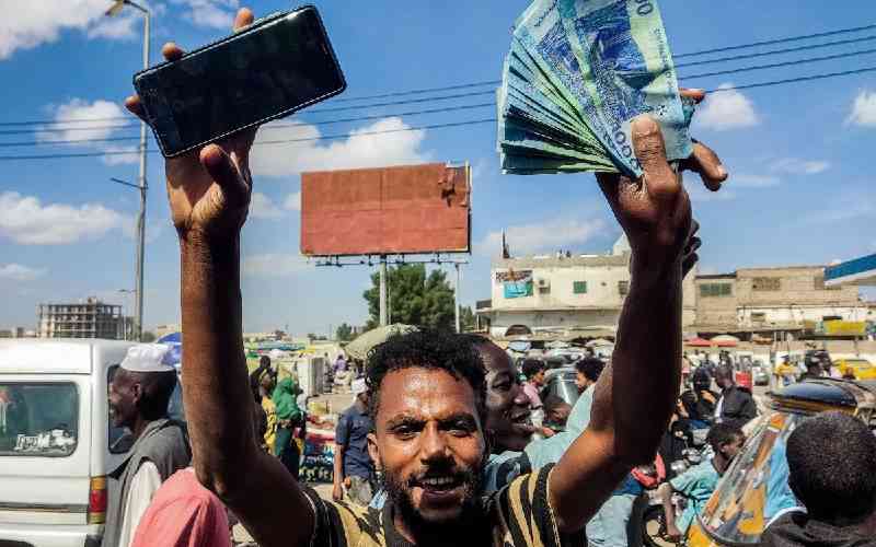 People protest calling upon the army-backed Sudanese government to extend the deadline to exchange Sudanese pound banknotes after authorities reportedly changed two of the notes in circulation, invalidating the old ones, in the northeastern Red Sea city of Port Sudan on December 31, 2024.[FILE.AFP]
