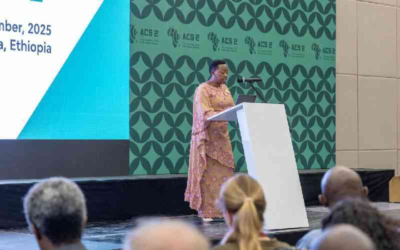Kenya’s First Lady, Rachel Ruto, speaking during a high-level side event at the Africa Climate Summit (ACS2) in Addis Ababa.[Courtesy]