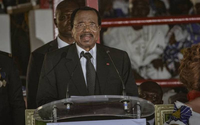 Cameroon President Paul Biya addresses a campaign rally in Maroua on October 7, 2025. Cameroonians re-elected their 93-year-old president on October 12, 2025. [AFP]