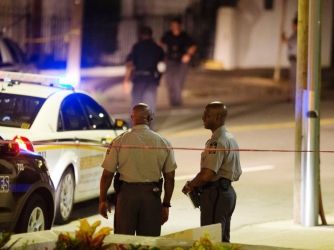 The suspect, who police described as a 21-year-old white man wearing a sweatshirt, jeans and boots, was still at large hours after the shooting on Wednesday evening.
