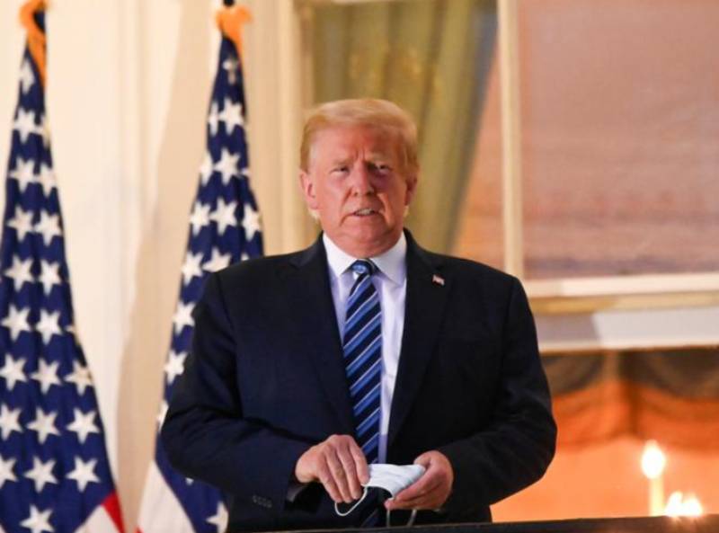 US President Donald Trump poses on the Truman Balcony of the White House after returning from being hospitalized at Walter Reed Medical Center for coronavirus disease (COVID-19) treatment, in Washington, US October 5, 2020. [Reuters]