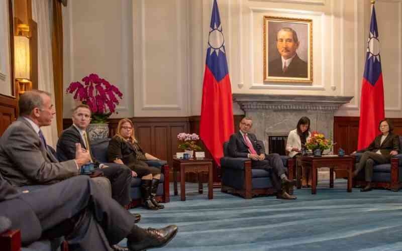 Taiwan President Tsai Ing-wen, right, meets with a U.S. delegation then in Taiwan for an annual defense forum, May 6, 2019. [VOA]