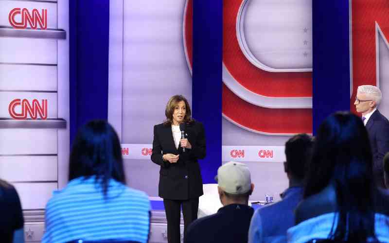 US Vice President and Democratic presidential candidate Kamala Harris speaks during a CNN Town Hall moderated by television host Anderson Cooper (R) at Sun Center studios in Aston, Pennsylvania, on October 23, 2024. [AFP]