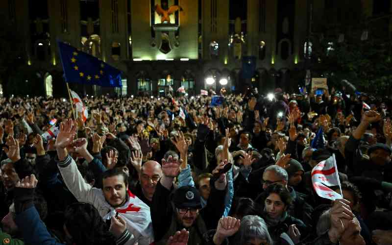 Georgian opposition supporters rally to protest results of the parliamentary elections that showed a win for the ruling Georgian Dream party, outside the parliament building in central Tbilisi on October 28, 2024. [AFP]