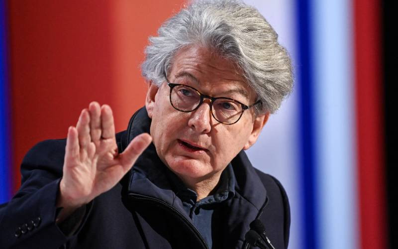 European Commissioner for the Internal Market Thierry Breton delivers a speech during the congress of the centrist MoDem party in Blois, on March 23, 2024. [AFP]