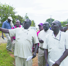 From left, Kenya Rural Roads Authority chairman Protas Murunga is joined by Mwangi Maingi and Western Regional Manager Elvuna Keseko during the tour o