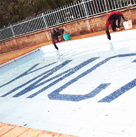 Workers clean the YMCA swimming pool at the Nairobi Central Hostels. [PHOTO: AMOS KAREITHI/STANDARD]