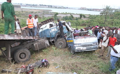 Accident scene at Kibarani area in Mombasa. [Photo: Standard] |