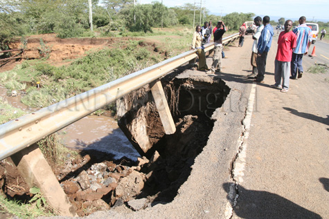 A section of a bridge along the Nairobi-Nakuru highway that was washed away by floods. [Photo: Antony Gitonga/Standard]