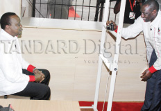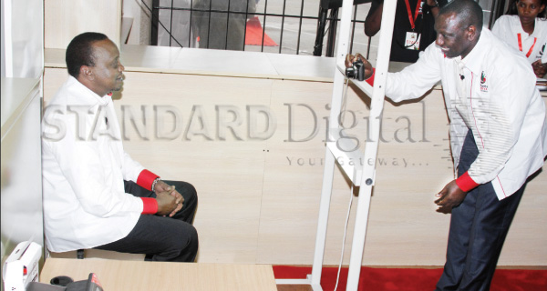 Deputy President William Ruto takes a picture of President Uhuru Kenyatta during the official launch of Huduma Centre Thursday. [PHOTO: Mbugua Kibera/STANDARD]