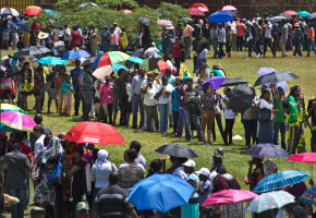 Several people fainted in the stifling heat as South Africans waited their turn to file past Mandela’s casket after family members, foreign dignitaries and celebrities paid their respects at the imposing Union Buildings, perched on a hill overlooking the city.
