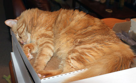 A long-haired tabby cat has been hailed a hero after finding an abandoned baby in a street and climbing in the box he had been left in to protect him from the cold.