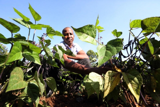 Patrick Mwai 38, inspects the French peas, Purple variety that he cultivates on his two and a half acres farm in Gatheru area of Mathira, in Nyeri County. A kilo of the beans retails at sh. 60 per kilo. [PHOTO: MOSE SAMMY/STANDARD]