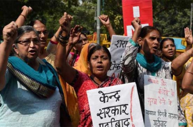 The two-and-a-half-year-old girl was abducted from a religious event in west Delhi by two men on Friday night and raped before being dumped in a park near her home, relatives and police said.