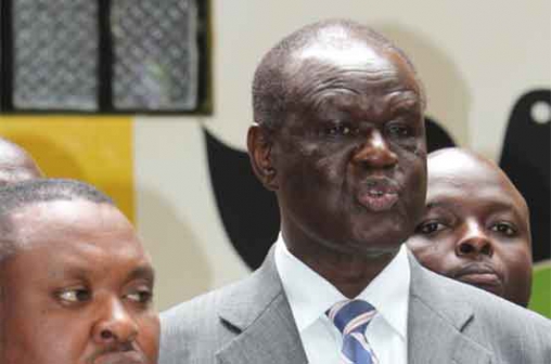 Jubilee Alliance Party steering committee chairman Kiraitu Murungi flanked by URP secretary general Fred Muteti addressing the press at the JAP headquarters yesterday. They said that they are ready to merge as one big party soon. (PHOTO: JENIPHER WACHIE/ STANDARD)