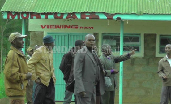 Mourners wait at Nanyuki Teaching and Referral Hospital mortuary after the hospital delayed to release the body of Rev John Gitari. [Photo: JOB WERU/Standard]