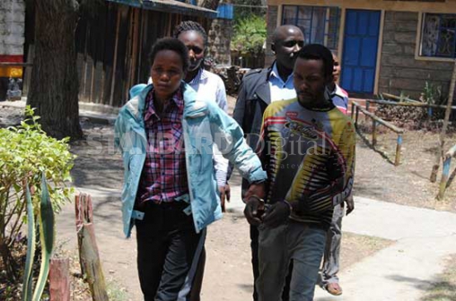 The couple being led outside Narok police station. They are being held following sodomy links of their seven-month old baby boy. They are undergoing medical test before charges are preferred against them. [PHOTO:ROBERT KIPLAGAT/Standard]