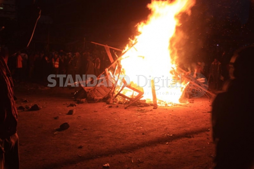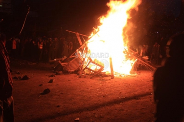 Residents of Kisii town set up a fire along Kisii-Migori road in protest following the killing of two women by police. (Photo: Eric Abuga)
