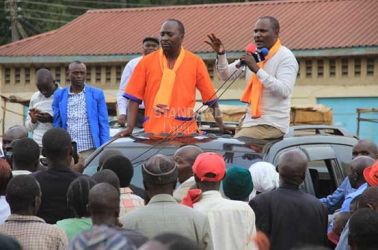 ODM national chairman John Mbadi (right) and the party's Nyacheki by-election candidate Naftal Onkoba during campaigns on 6.10.2016 at Nyacheki market. (Photo: Eric Abuga/Standard)