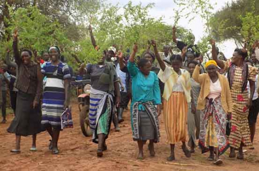 Residents of Muanzo village, Mbeere South hold a peaceful demonstration on Tuesday to express their discontent with the demarcation and allotment of Mwea scheme land. (PHOTO: JOSEPH MUCHIRI/ STANDARD)