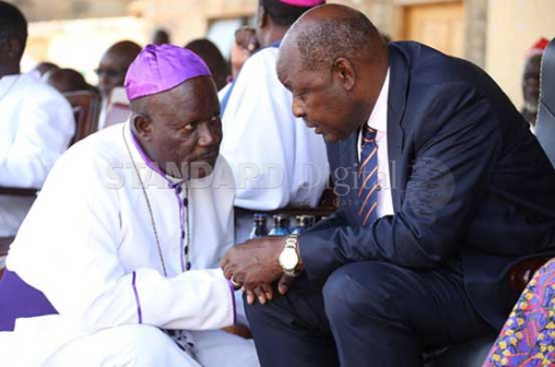 Kisumu Governor Jack Ranguma with Canon Bishop Joshua Owiti of Maseno East Diocese in Kisumu County during a thanksgiving prayer at Jomo Kenyatta sports ground in Kisumu on December 16, 2016. [Photo:COLLINS ODUOR/Standard]