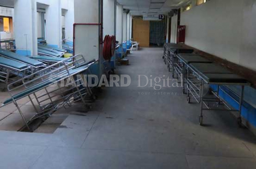 Medical stretchers are seen abandoned along corridors at the main hospital during a strike by medical practitioners following the failed negotiations between health unions and government on wage increase and improvement of working conditions in Kenya's capital Nairobi, December 22, 2016.
