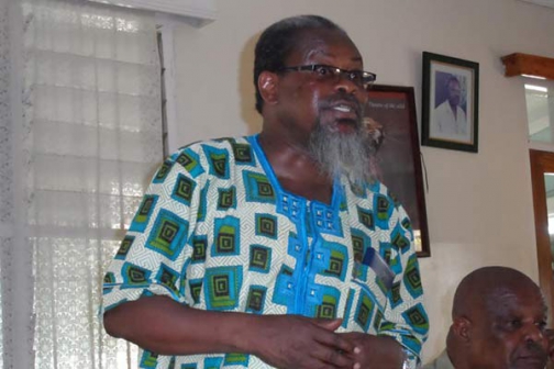 UASU National Secretery Muga K'Olale addresses lecturers from Masinde Muliro University during annual general Meeting at Shieywe Guest House in Kakamega on 17th/March/2015 . He said that university's charters are only considered once they are signed by the president. BY CHRISPEN SECHERE.