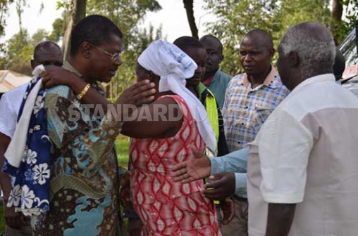 Ford-K leader Moses Wetang’ula condoles with the family of former minister Joseph Otiende in Kegoye village, VIhiga County yesterday. [PHOTO: ERIC LUNGAI/STANDARD]