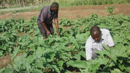 Kilifi's Burangi Irrigation Scheme vice chairman Timothy Koe (left) and member James Mwadanda tend to crops. The agricultural sub-sector received Sh15 billion in the Budget Treasury CS Henry Rotich presented at Parliament yesterday. [MAUREEN ONGALA, STANDARD]