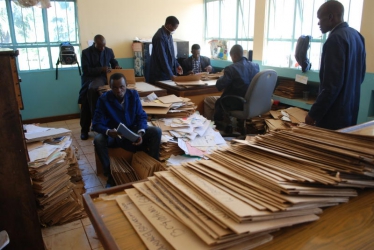 Casual workers sorting out documents at Kisii Land Registry in May 2015 (Photo: Denish Ochieng, Standard)