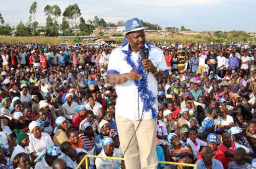 CCM party leader and Bomet Governor Isaac Ruto addressing a rally at Chebole trading centre in Sotik Sub-county, a venue that president Uhuru Kenyatta and his deputy snubbed during their recent visit to Bomet county. He critized Jubilee government for skewed development records in the South Rift region as compared to the North.?PHOTO BY GILBERT KIMUTAI/STANDARD