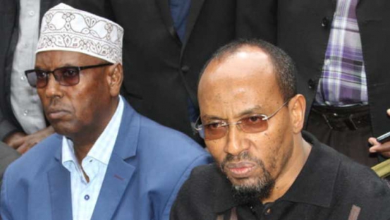 Mandera governor aspirant Hassan Noor and Senator Billow Kerrow during a press conference in Nairobi where they raised alarm over missing names on IEBC list. (Photo: Willis Awandu/Standard)